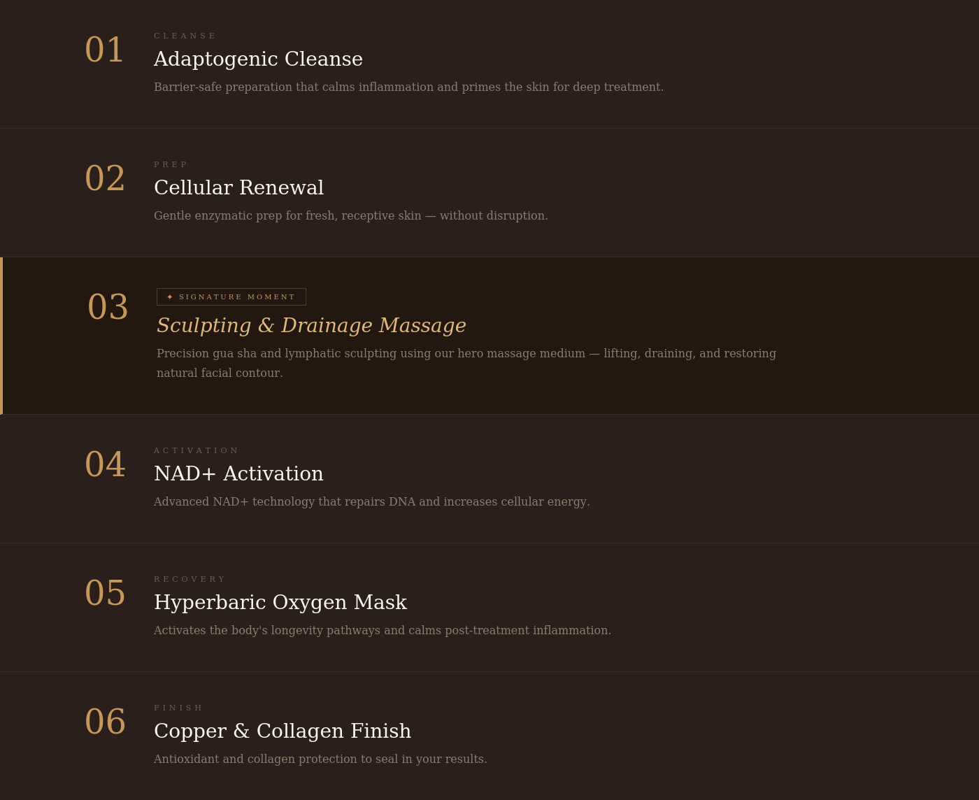 Rooted in Traditional Chinese Medicine and elevated by cutting-edge longevity science, our signature facial massage protocol goes far beyond the surface. We address the lymphatic system, facial musculature, cellular health, and nervous system — all in one deeply intentional treatment. This is what happens when a longevity physician curates a facial experience.
